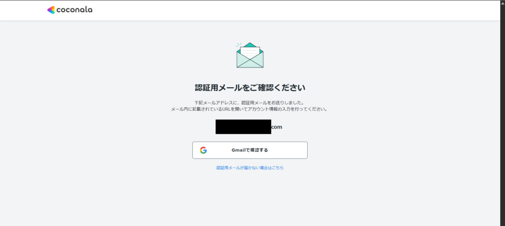 上記のような画面になったらメールを確認する